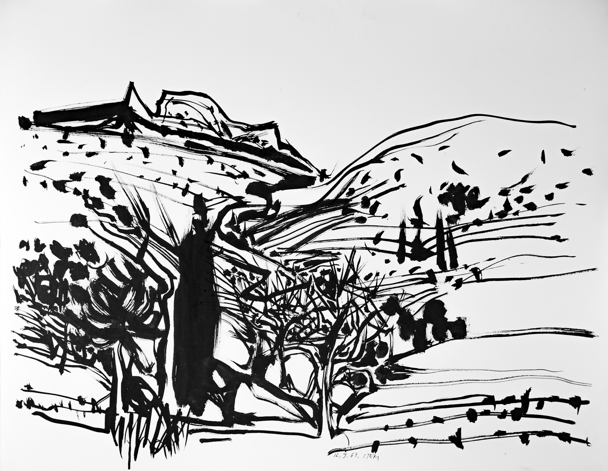 Les Alpilles, 1963, Encre de Chine sur papier, 90 x 70 cm (Cat. n° 7003)