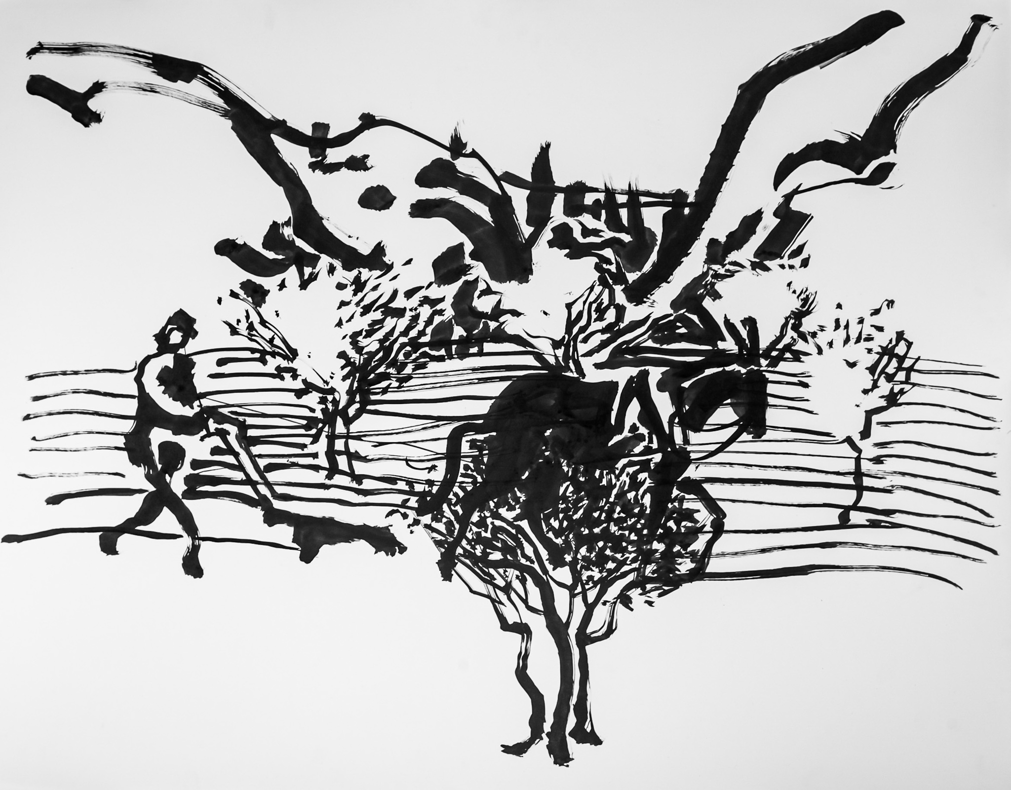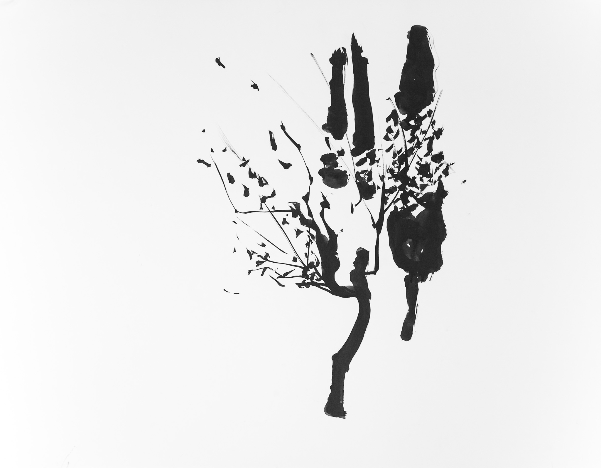 Cyprès et amandier, 1964, Encre de Chine sur papier, 90 x 70 cm (Cat. n° 7020)