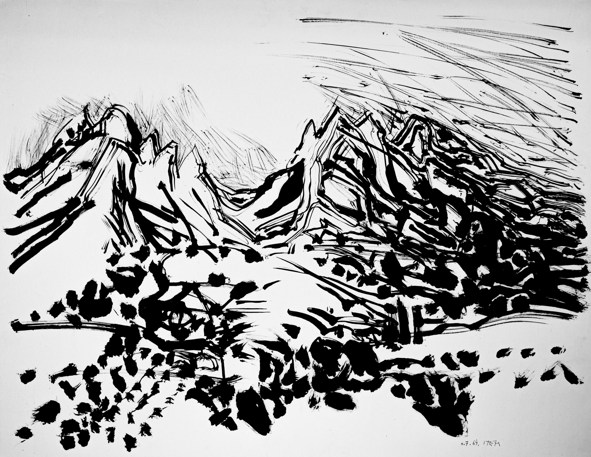 Les Alpilles, 1964, Encre de Chine sur papier, 90 x 70 cm (Cat. n° 7046)