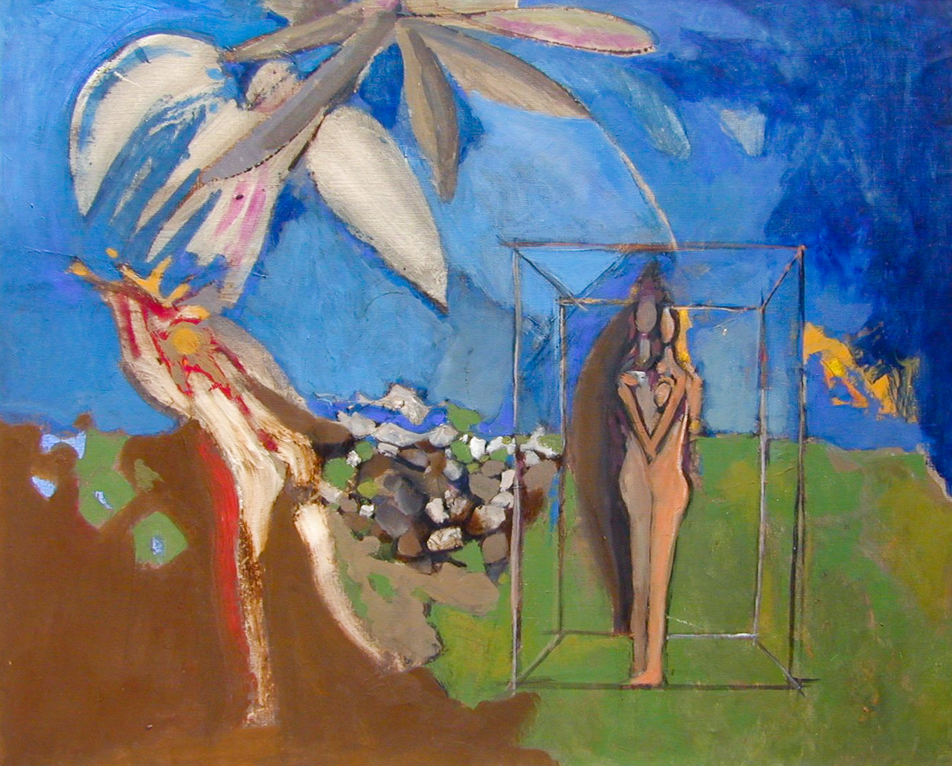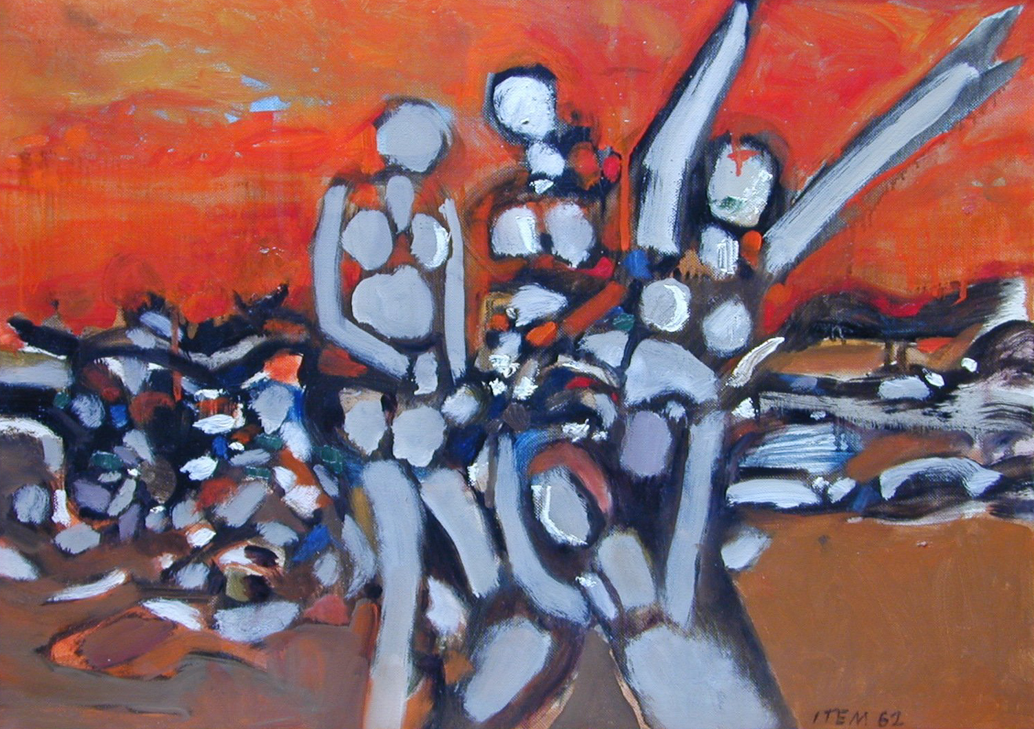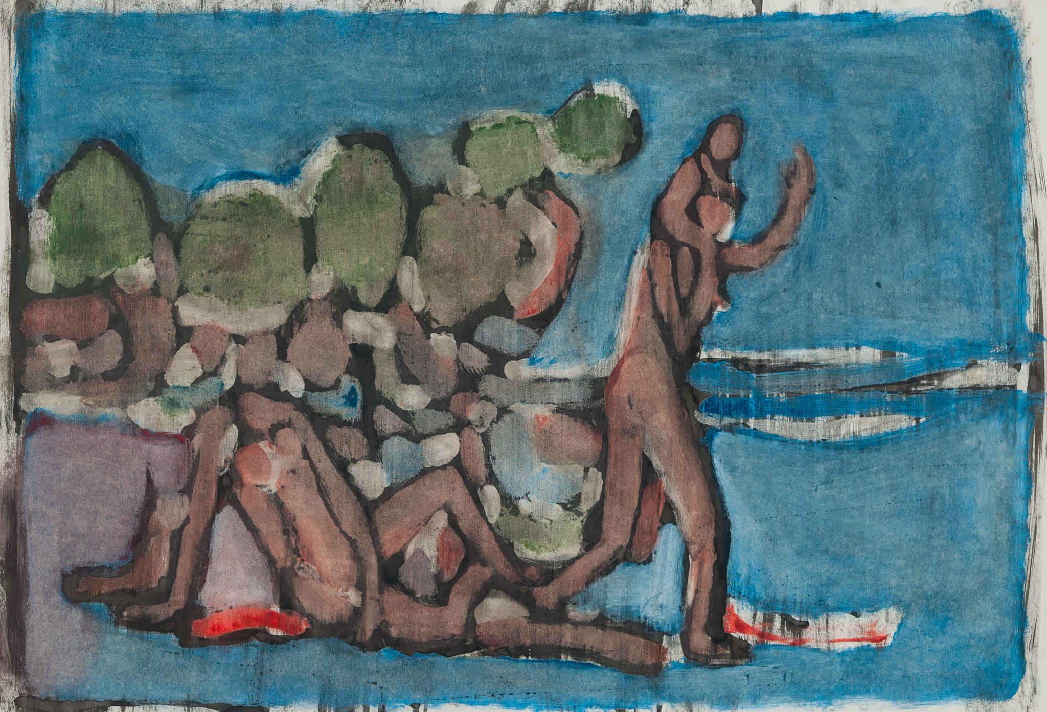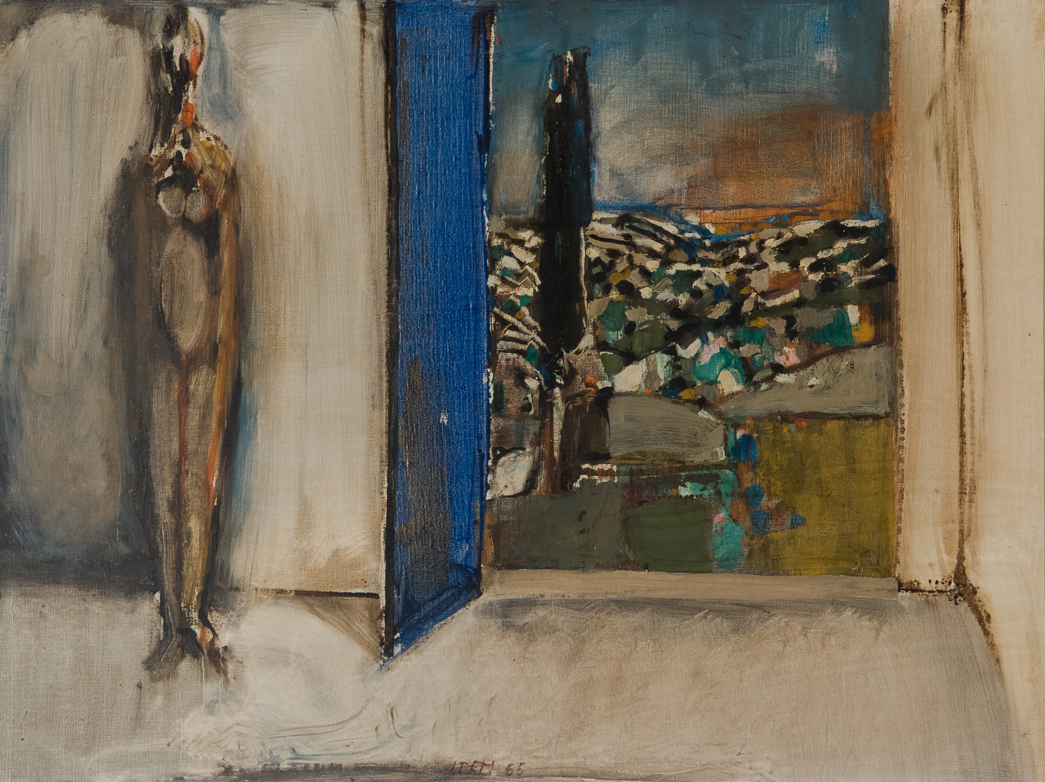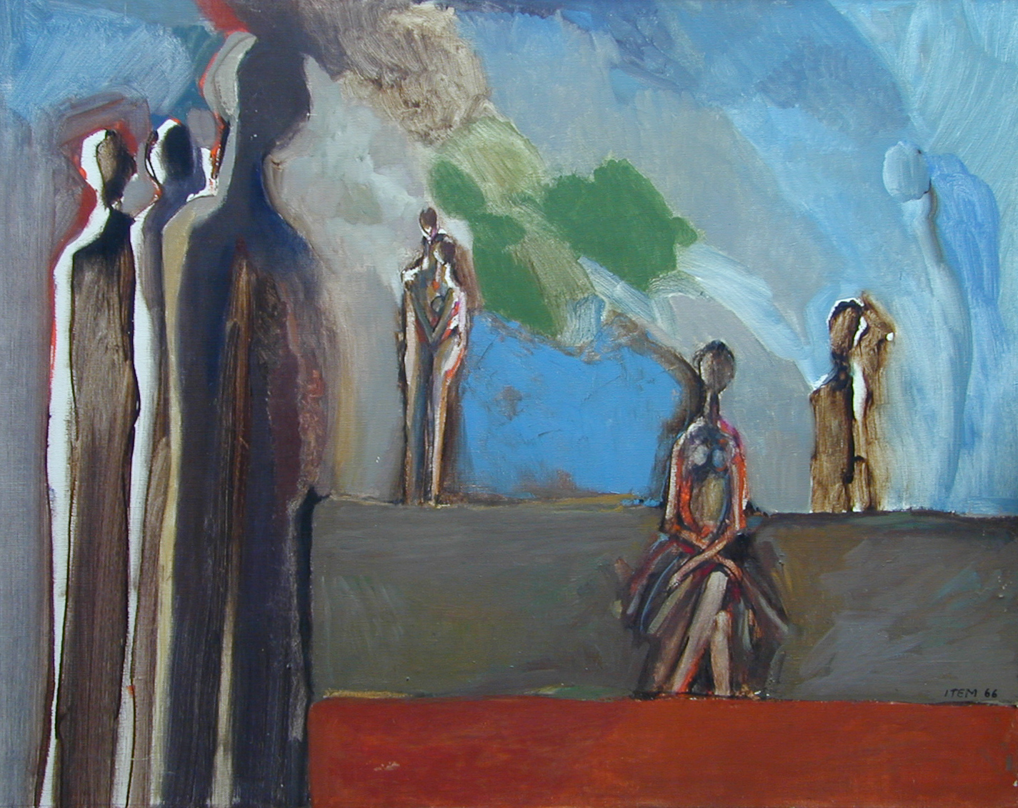Figures et paysage, 1969, Cire sur toile, 100 x 81 cm (Cat. n° 234)