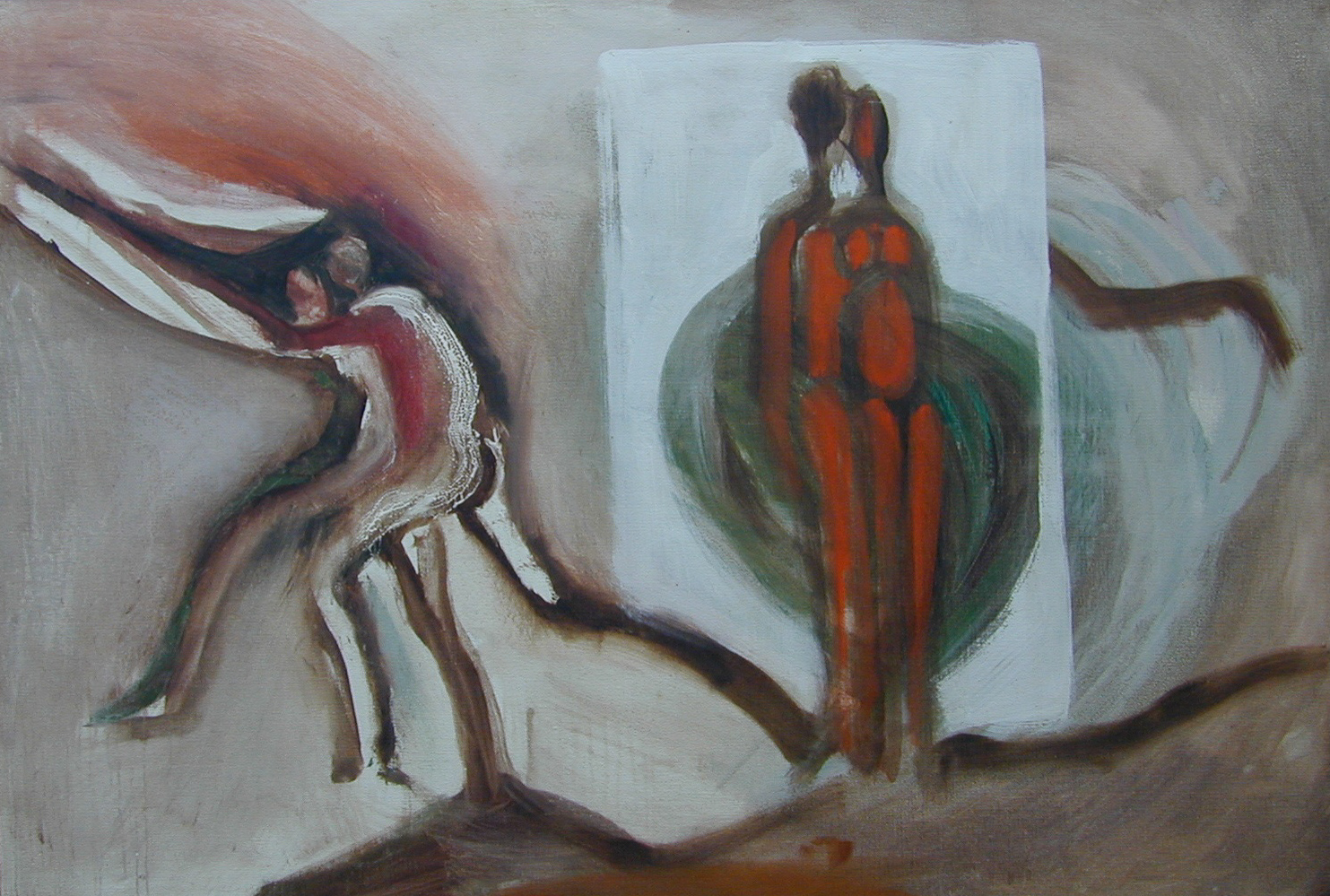 Couple et menace, 1967, Cire sur toile, 100 x 80 cm (Cat. n° 220)