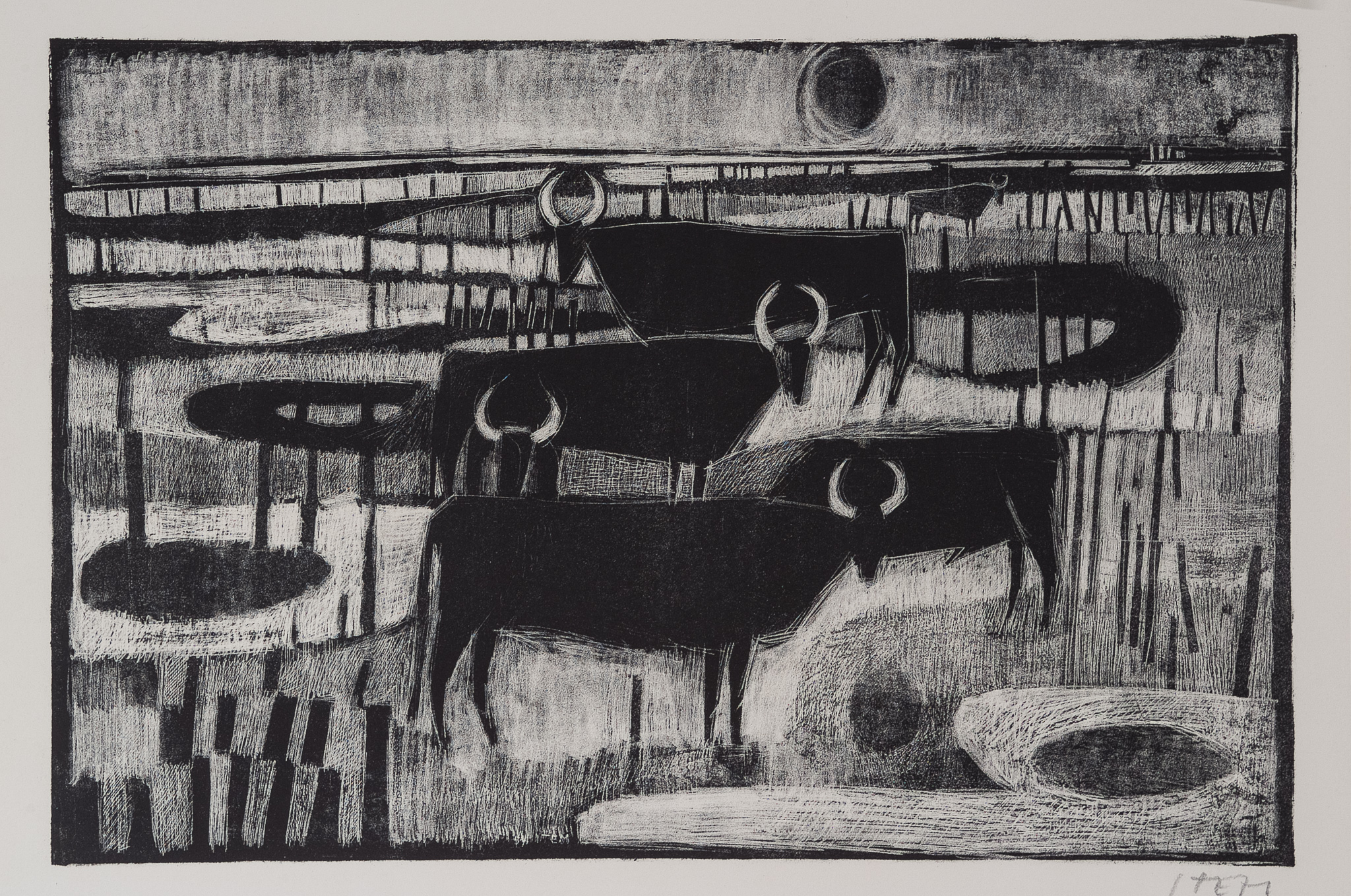 Manade des taureaux NB, 1954, Lithographie Hertig sur , 63.5 x 47 cm (Cat. n° 5127)